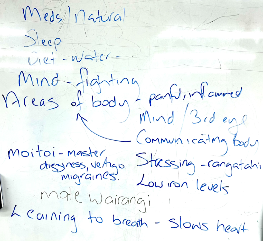 Please find the first board below with some of the notes that whānau had listed what they wanted to learn more about in traditional Māori healing. While some of you had no idea what this was, there were some of you who were quite specific with your needs and so I work at tailoring the program to your needs and answering the some of the ask questions you raised that were of interest to you.