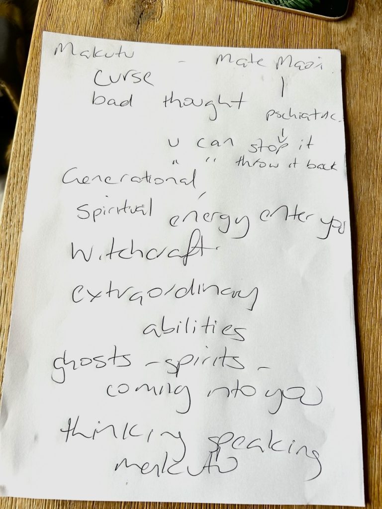 Ngangara (entities) and working the gut area. Mate Makutu – the art of making and breaking curses.