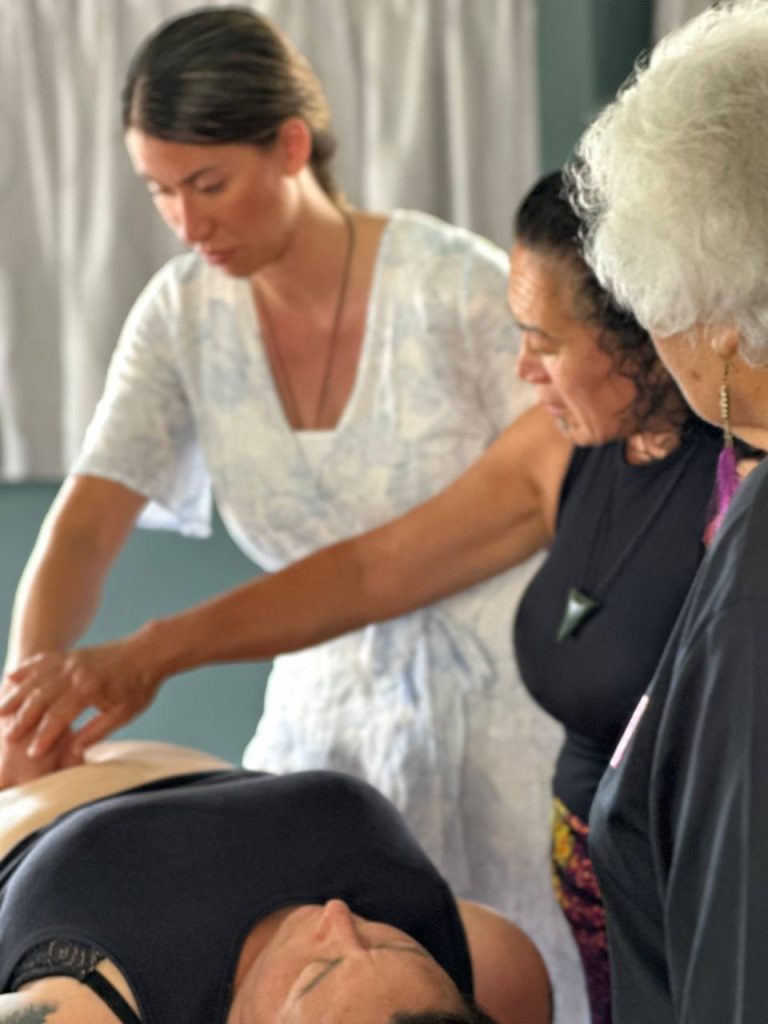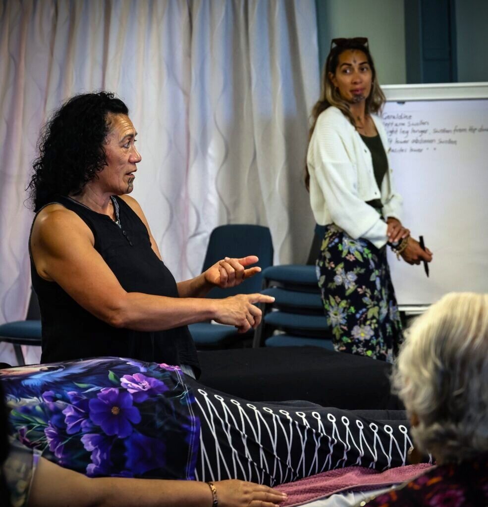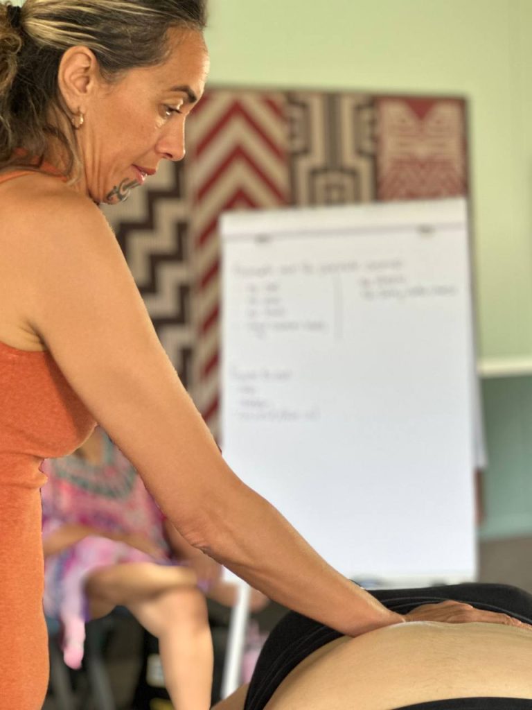 Another example of mirimiri, as an integral part of romiromi, is the movement of the waters. For example, the Tiwawe movement you learned here are wānanga, that Atarangi Muru (Ngati Kuri Tohunga), shared with me, not only moves and shifts all the memories that are held in the body but also uses the waters to clean any paru from the organs and this is romiromi.