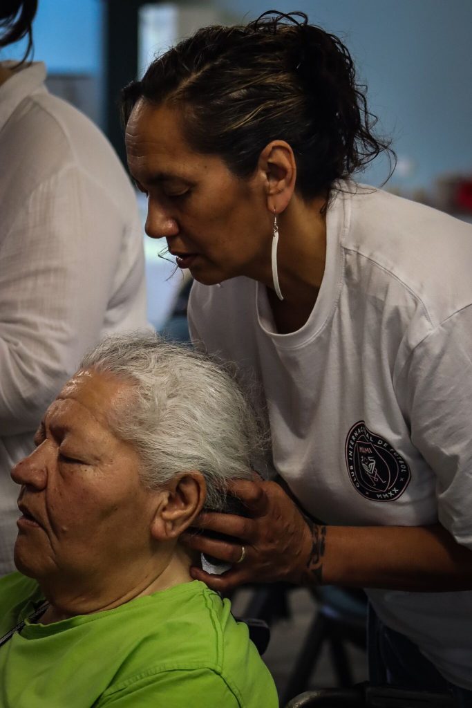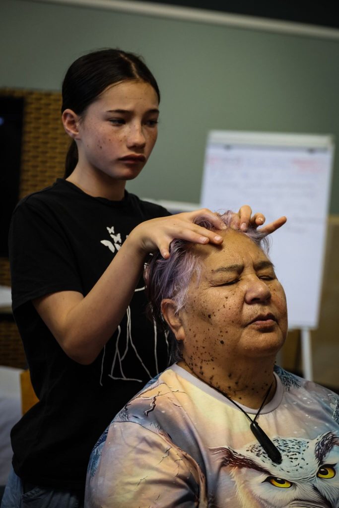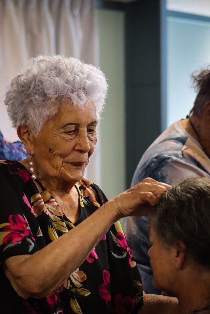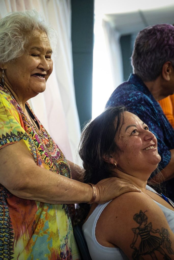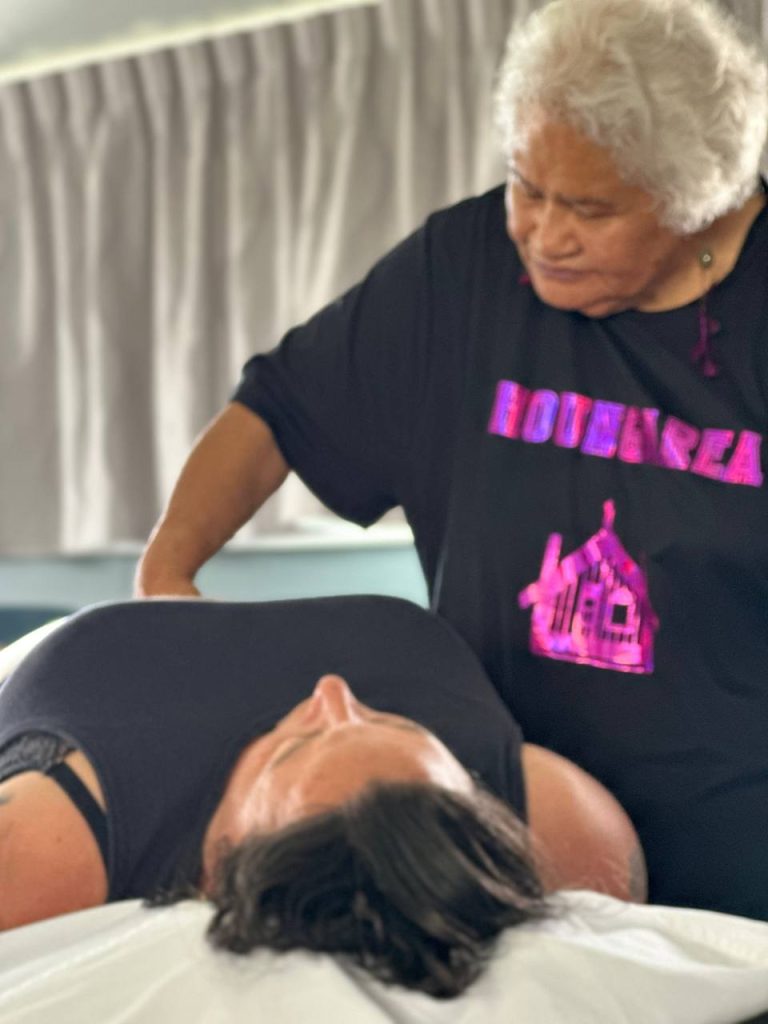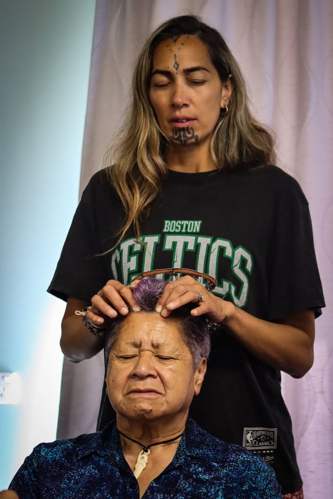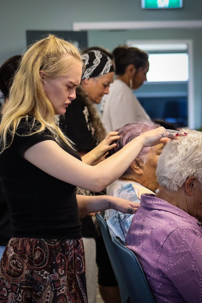 Perak also described the traditional body preparation process: gently moving the fluids within the body, rubbing flaxseed oil into the skin all over the body, and placing kawakawa leaves as part of the preserving the body before heading to the marae for the final tangihanga for dear Aunty Charlotte.