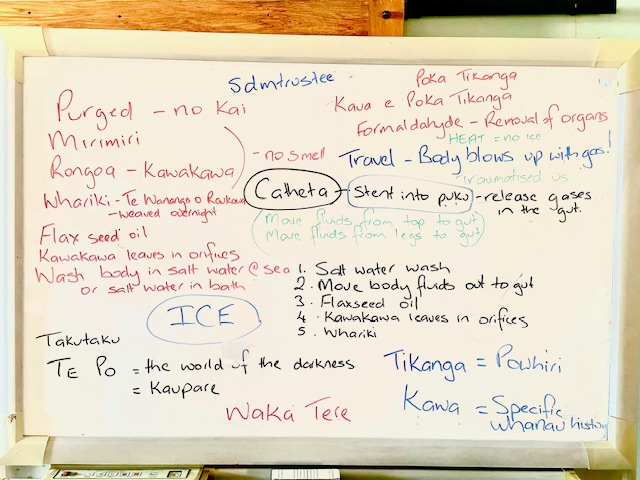 I was deeply humbled by her korero. From learning her experiences, it has enable me to sit with it and seriously consider the process. I really want to do the natural way, but I feel I would have to consider if my family would be up to it. We are seeing more whanau trying to navigate this, there may be more information out there that can give us a better understanding of how to manage the process. In particular what she said about stuffing the openings with kawakawa (orifice’s) is something that totally needs to be considered. So it was a brave conversation to have. I’m sure as a people we could figure this out by learning from each other’s experiences to be able to navigate it to be a loving and less terrifying experience, so that we can meet our loved ones wishes. Perak’s korero was so helpful and I am so grateful for the opportunity to be able to learn from it.